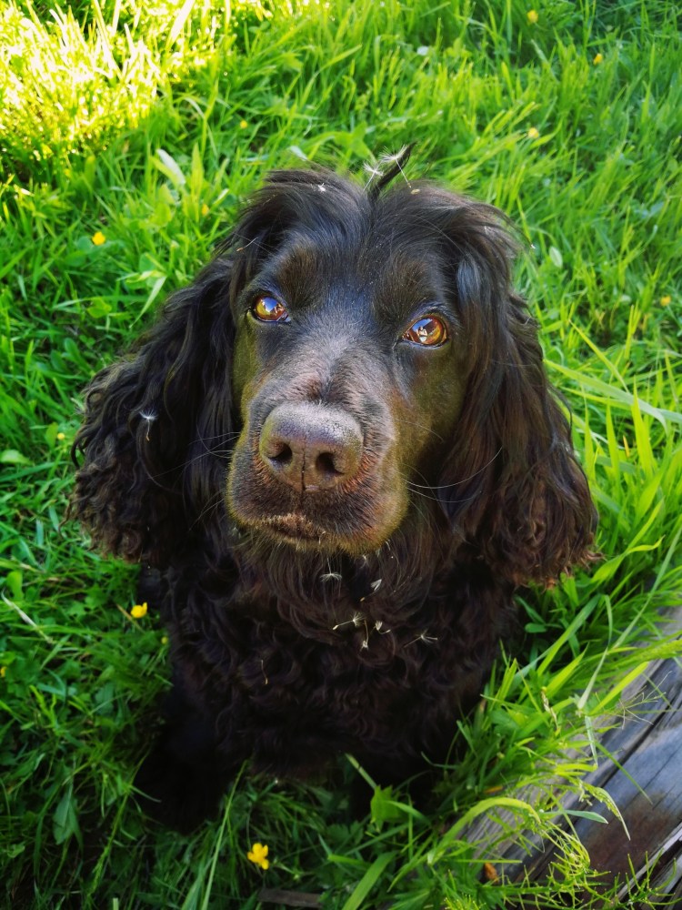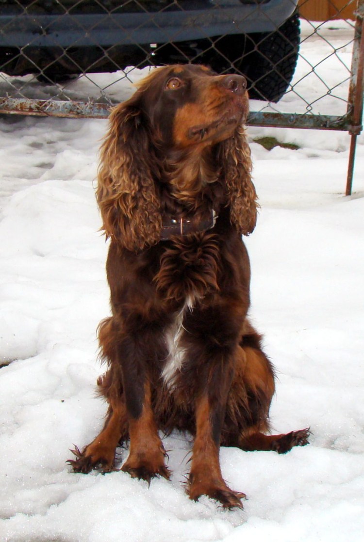 ![Смесь кокер спаниеля и русского охотничьего спаниеля]()