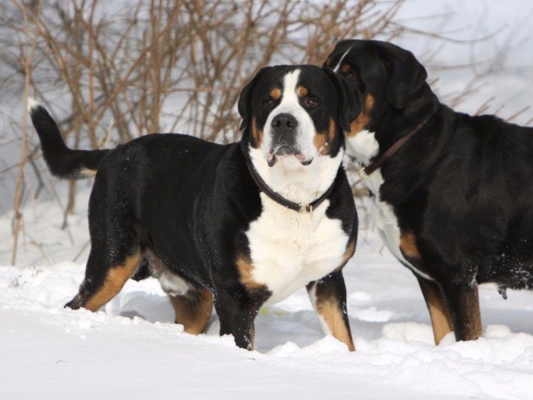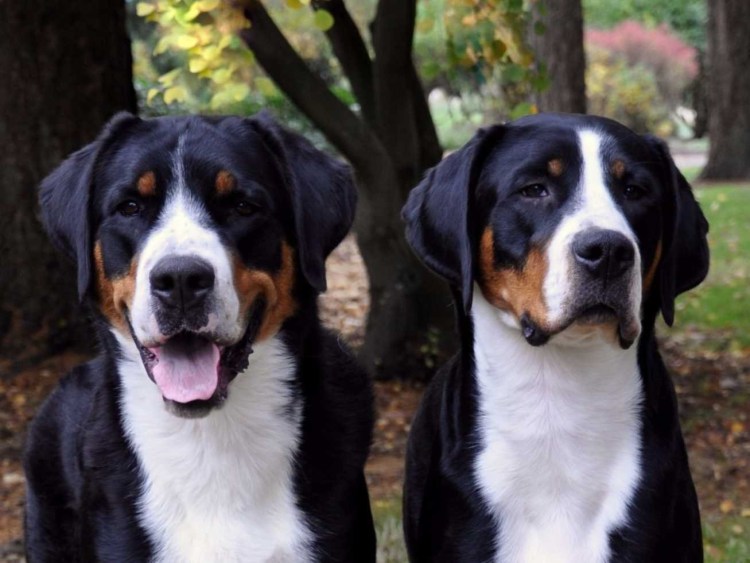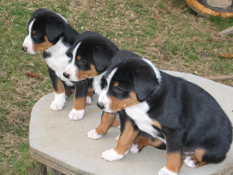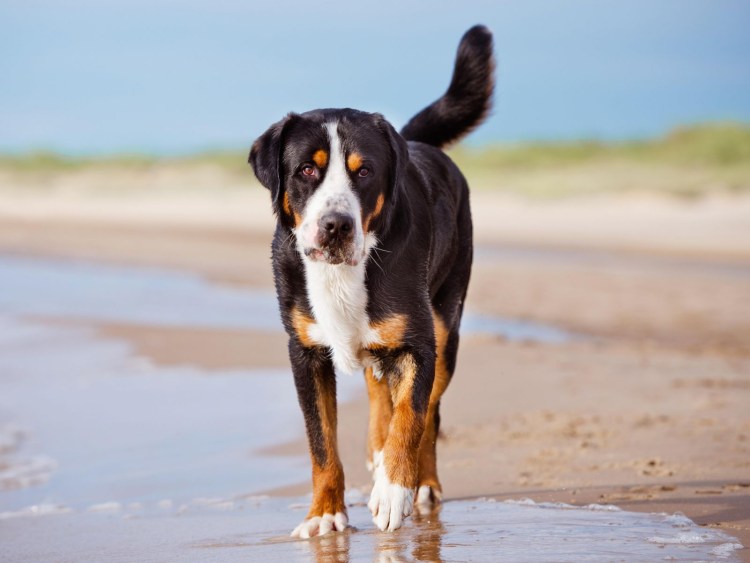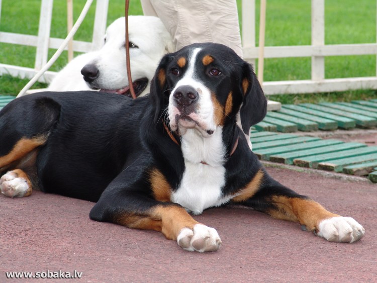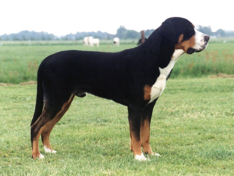 ![Зенненхунд Аппенцеллер гладкошерстный с человеком]()