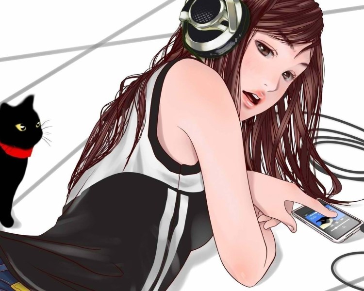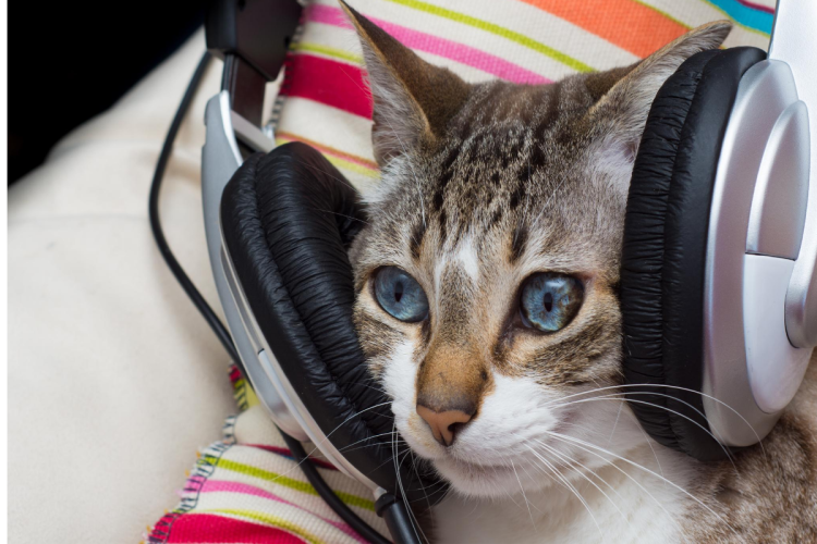 Кошка с наушниками