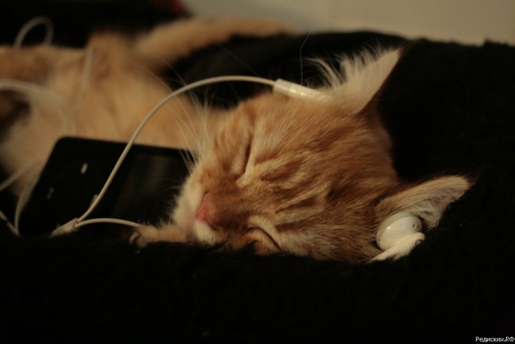 Кошка в наушниках