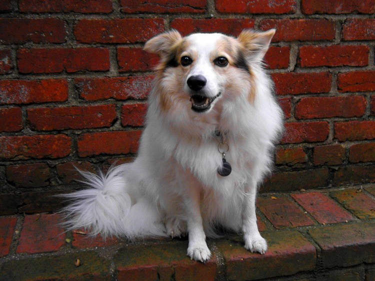 ![Кавалер Кинг Чарльз спаниель на выставке]()