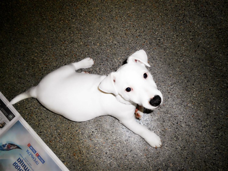 ![Щенок 1.1 месяца Джек Рассела белый]()