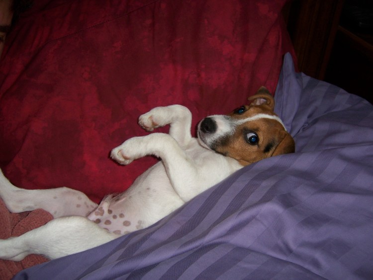 Щенок Джек Рассел 10 месяцев девочка ложиться спать на коленях
