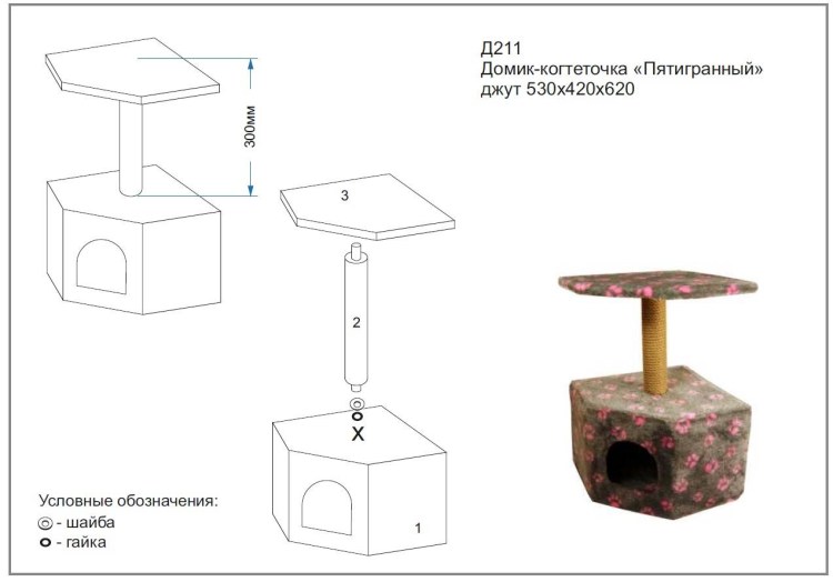 ![Кошачий домик с когтеточкой своими руками чертежи]()