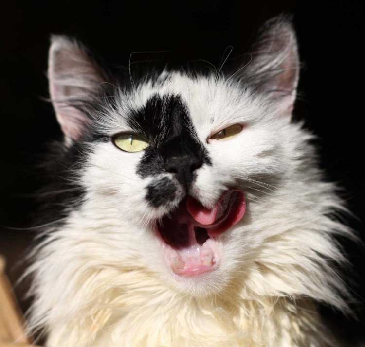 Смешной кот облизывается