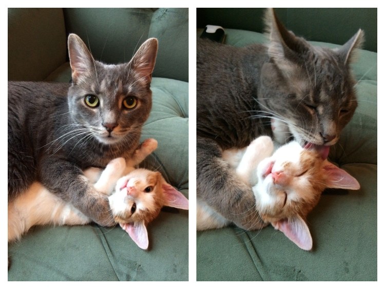 Кот облизывает кошку