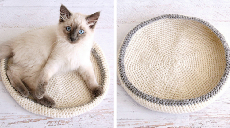 ![Лежанка для кошки из трикотажной пряжи крючком]()