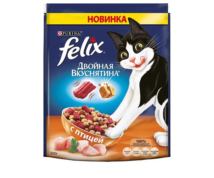 Корм сухой для кошек Felix двойная вкуснятина с птицей, 300г