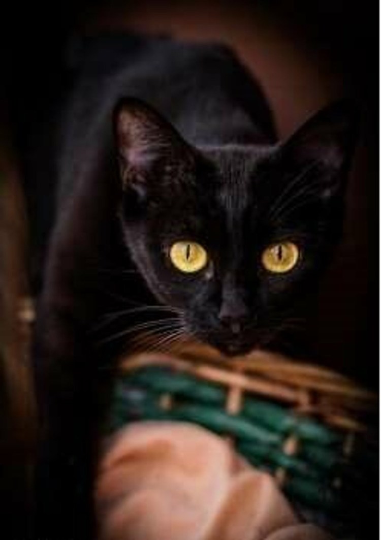Чёрный кот с янтарными глазами