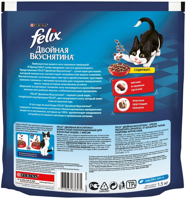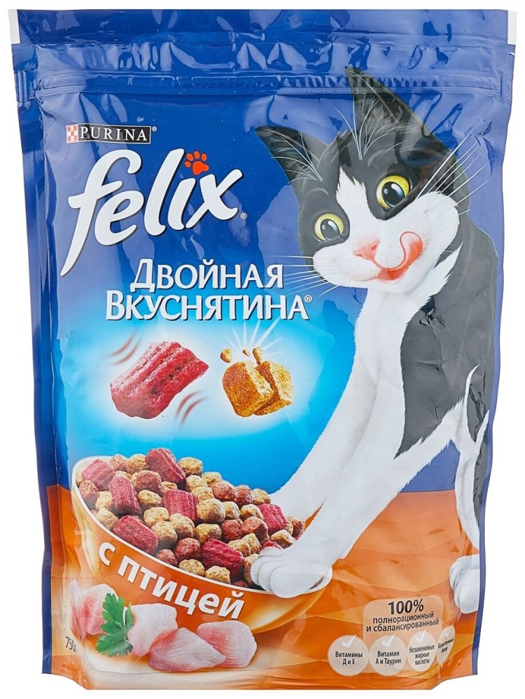 Феликс двойная вкуснятина 750г сухой корм рыба