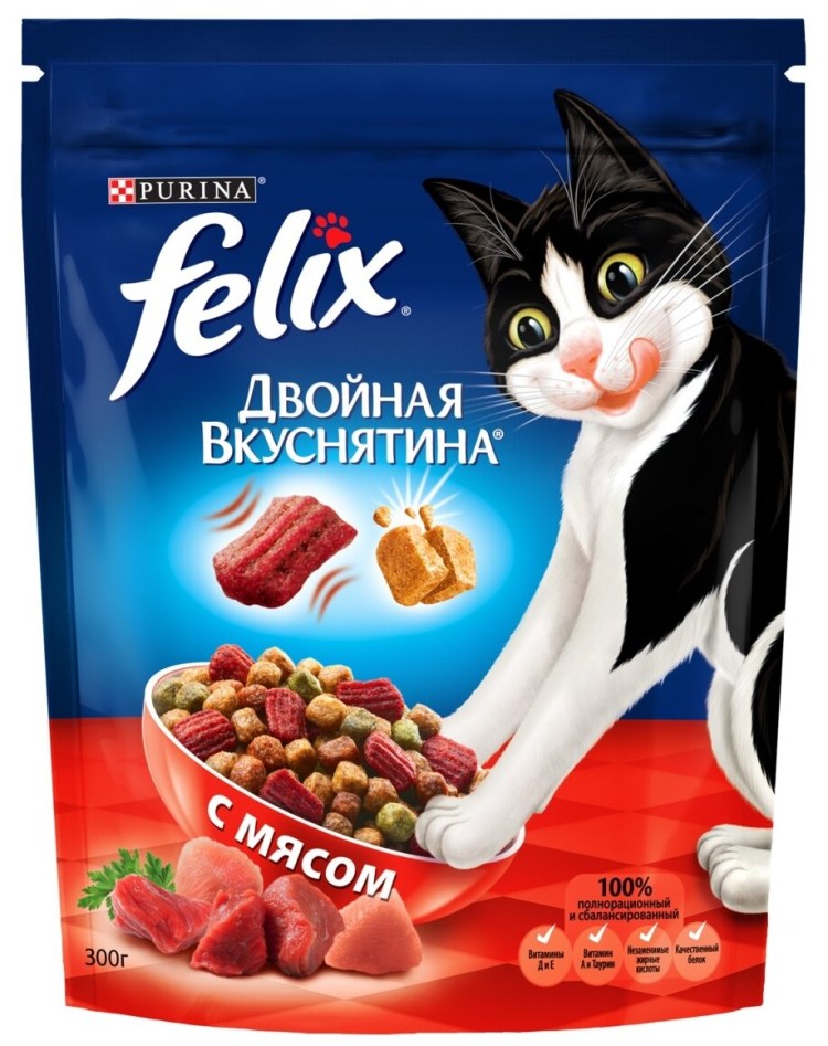 Корм сухой для кошек Felix двойная вкуснятина с птицей, 300г