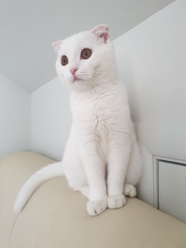 Скоттиш-фолд Шотландская вислоухая кошка белый