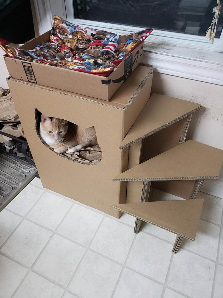 ![Домик для кота из коробок]()