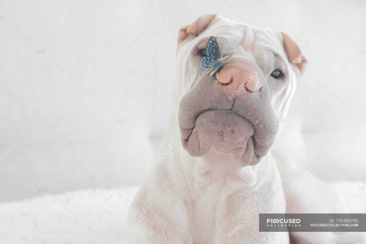 ![Собака с бабочкой на носу]()