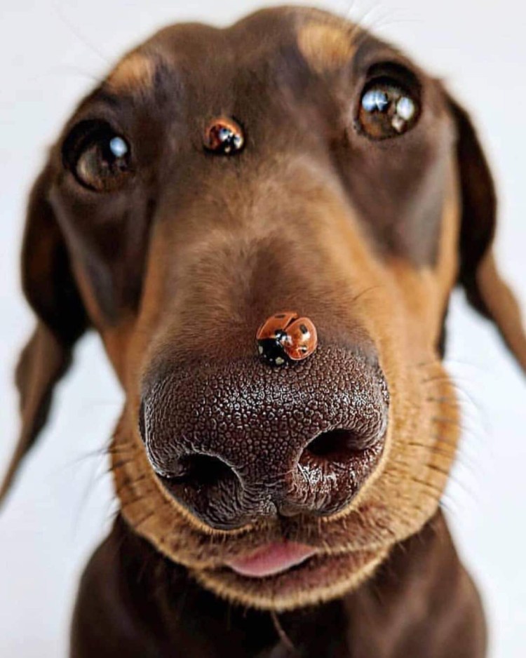 ![Божья коровка на носу у собаки]()
