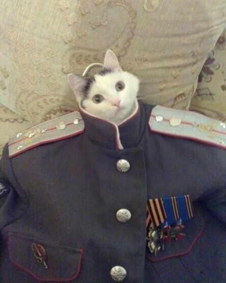 ![Кот в военной форме]()