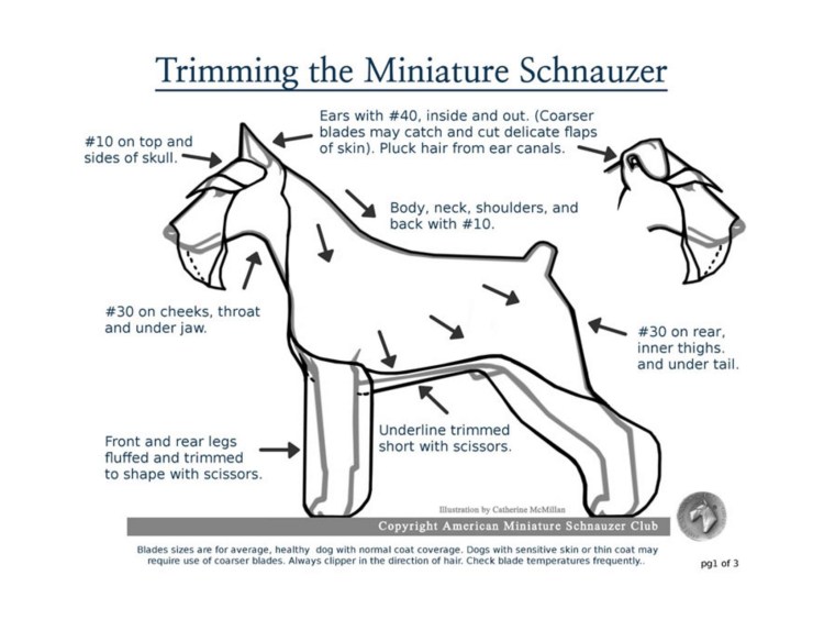 ![Схема тримминга цвергшнауцера морды]()