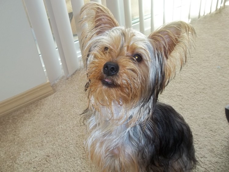 ![Ушастый Йоркширский терьер]()