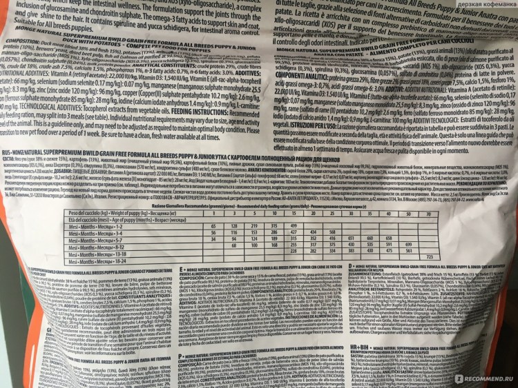![Корм для собак Монж для щенков крупных пород таблица кормления]()