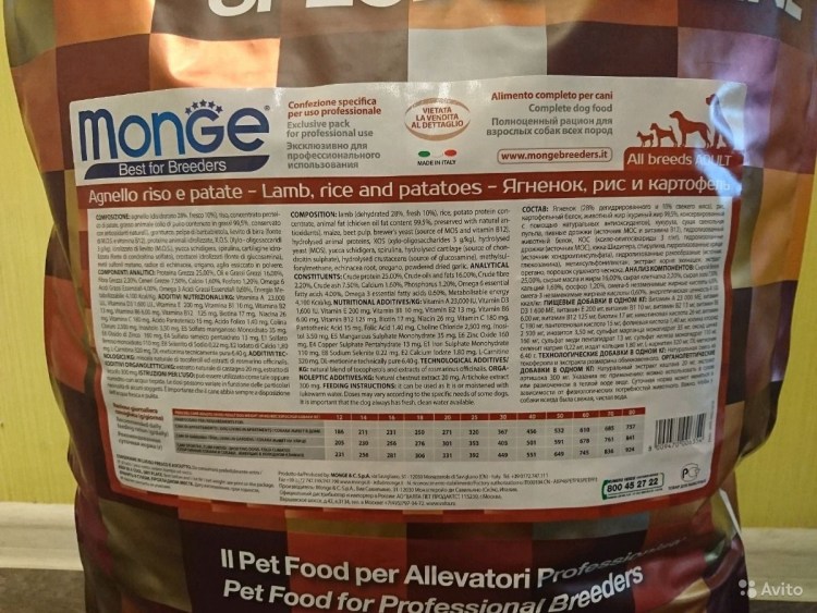 Корм Monge для собак мелких пород ягненок сколько давать вес 2 кг