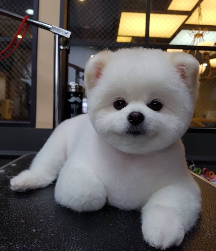 Собака померанский шпиц стриженный белая