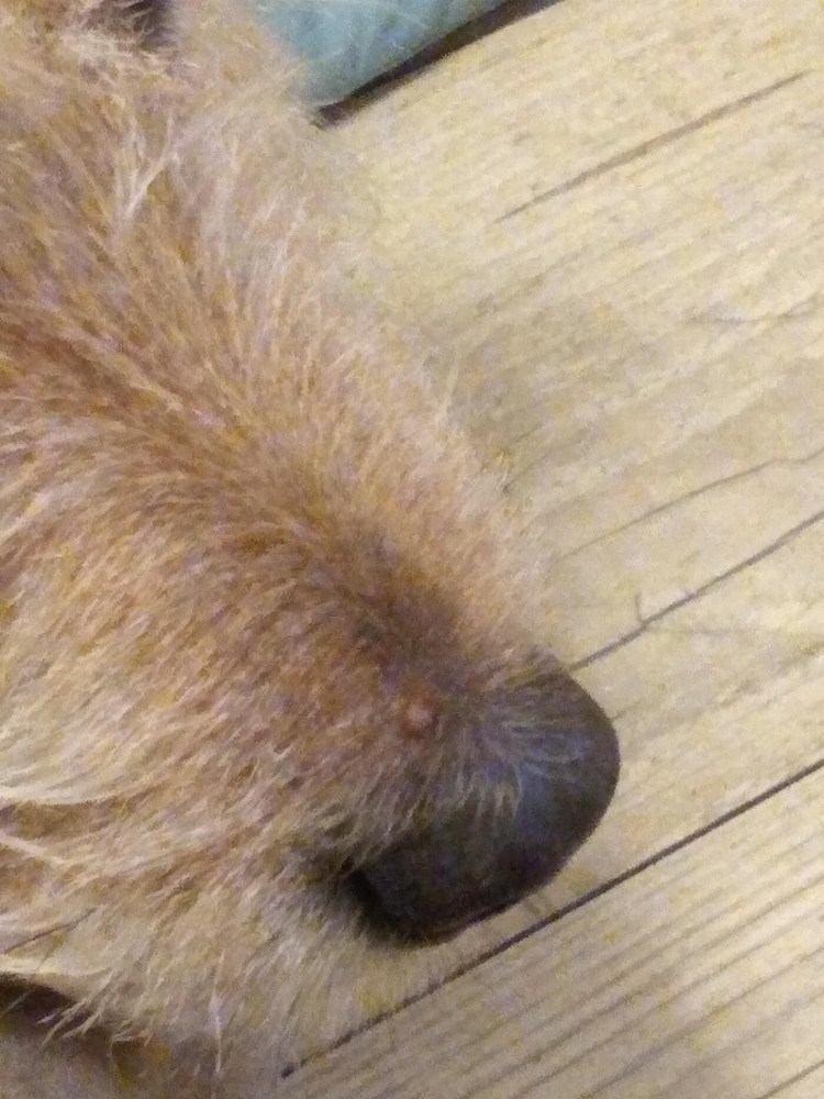![Бородавка у собаки на морде]()