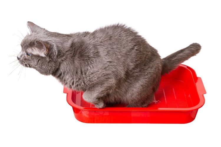 ![Кот сидит в лотке]()