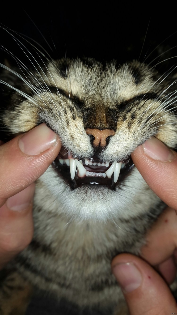 Котик с зубами человека