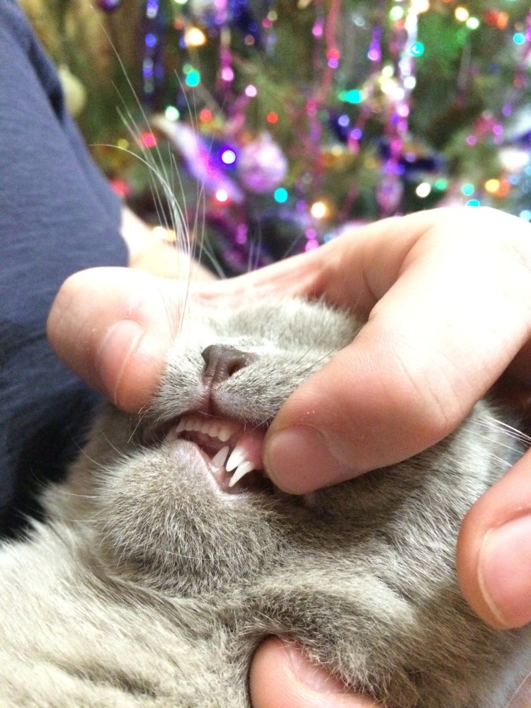 Двойные клыки полугодовалого котенка