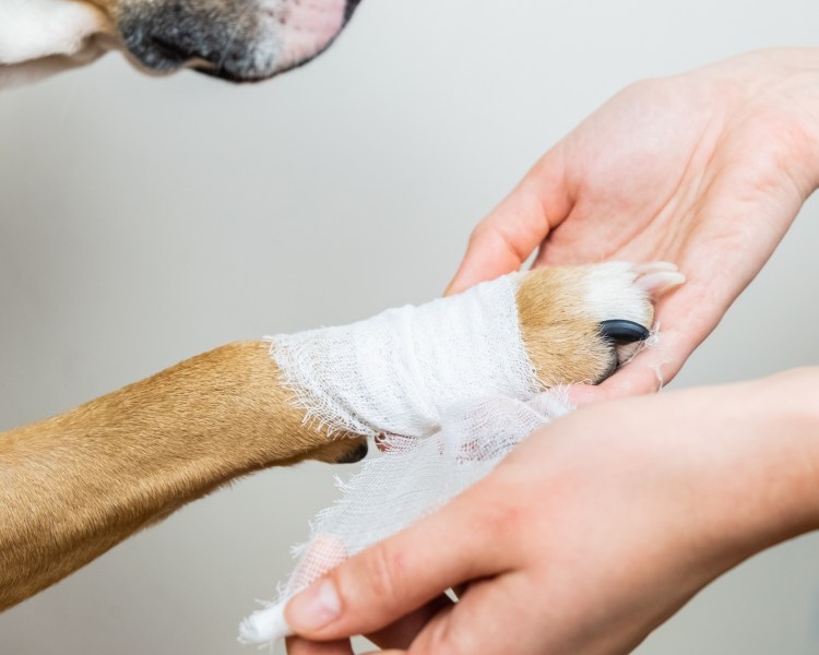 Собака с перебинтованной лапой