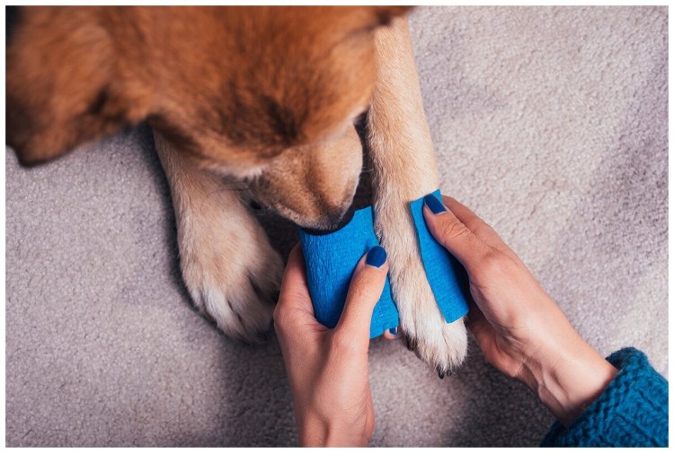 ![Собака с перебинтованной лапой]()
