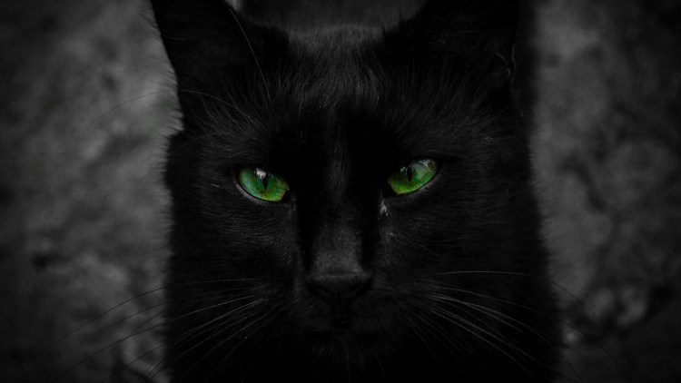 Чёрный кот с зелёными глазами арт
