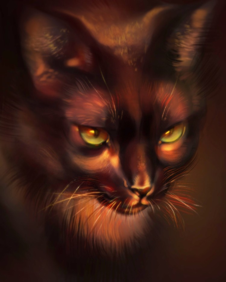 ![Чёрный кот с зелёными глазами арт]()