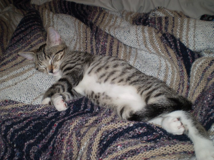 Спит полосатый котик