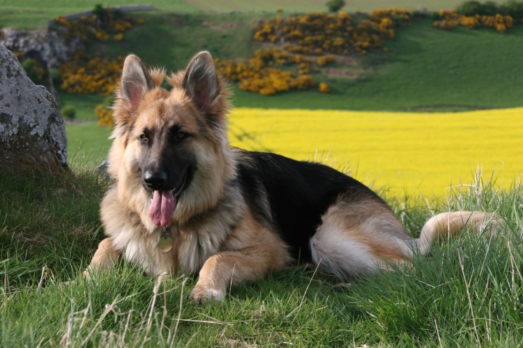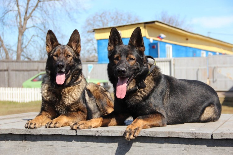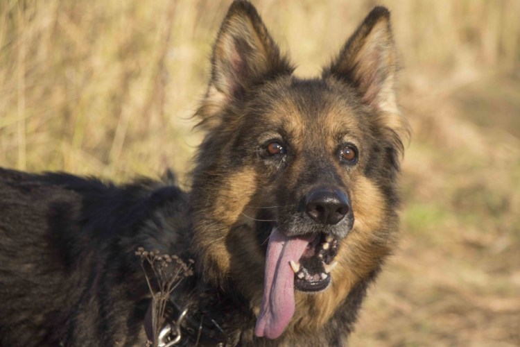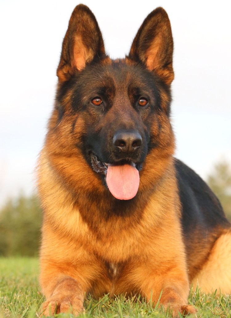 ![Немецкая овчарка зонарно-рыжего окраса]()