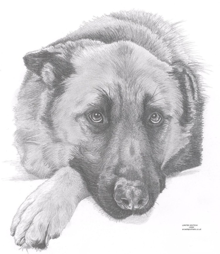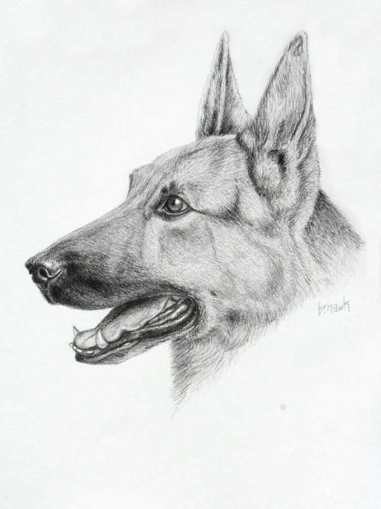 Немецкая овчарка портрет карандашом