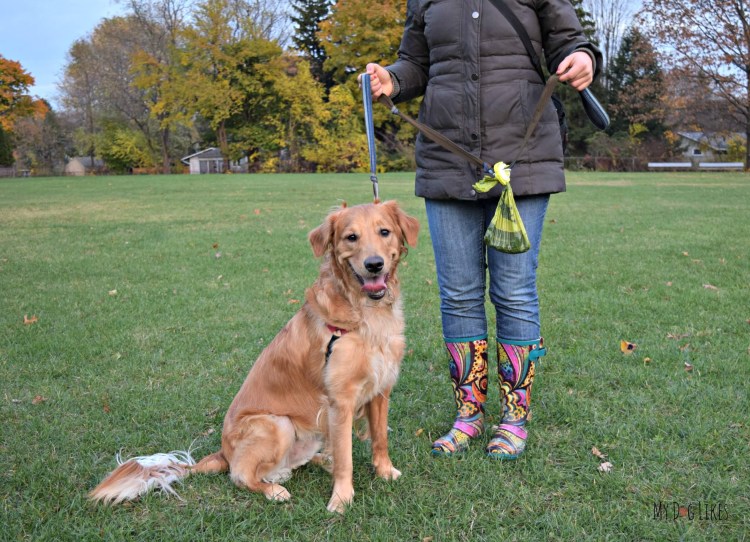 Лабрадор гуляет с хозяином