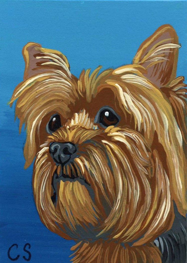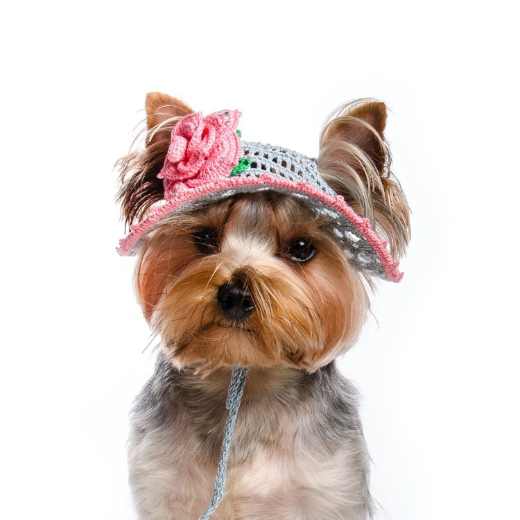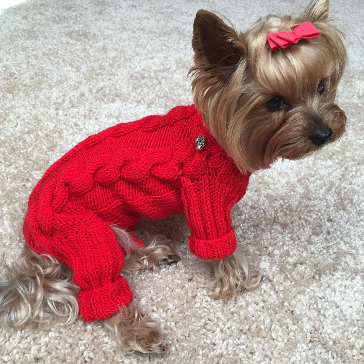 ![Йоркширский терьер вязаный из плюшевой пряжи]()