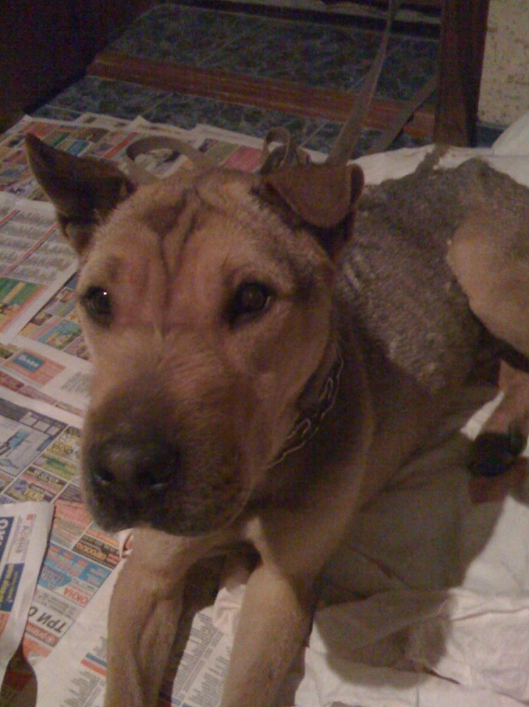 ![Собака помесь шарпея и лабрадора хвост колечком]()