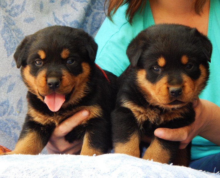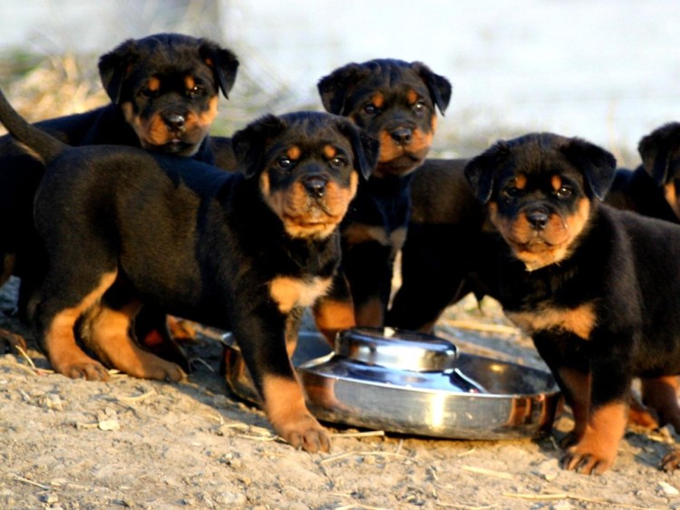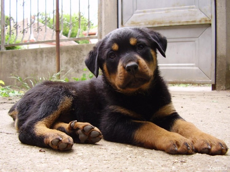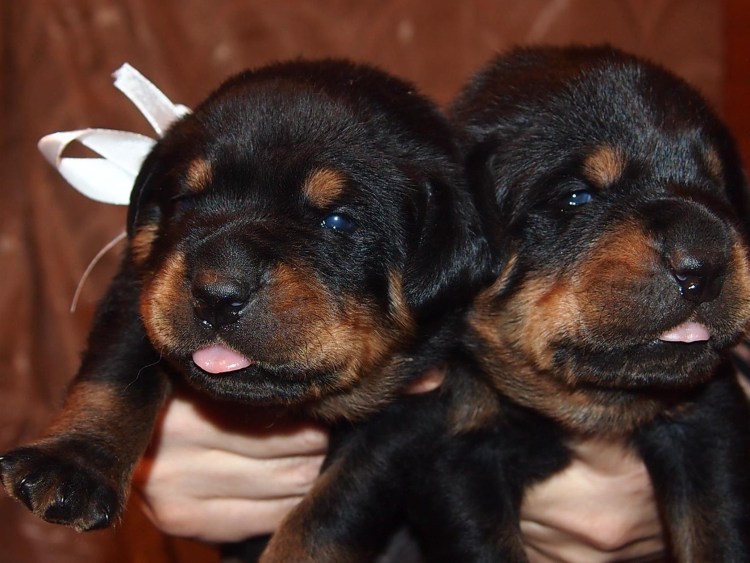 ![Когда щенки открывают глаза после рождения ротвейлеры]()