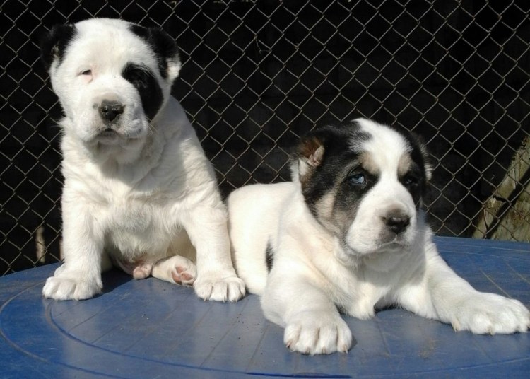 ![Среднеазиатская овчарка алабай черно белый щенок]()