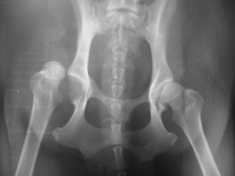![Снимок дисплазии тазобедренных суставов у собак]()