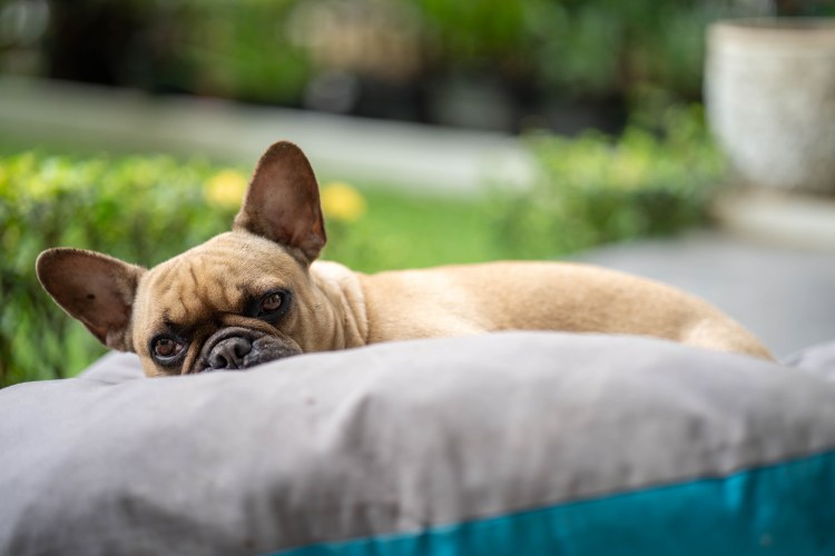 ![Бульдог лежит]()