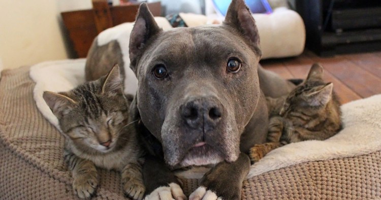 Стаффордширский терьер и кошки