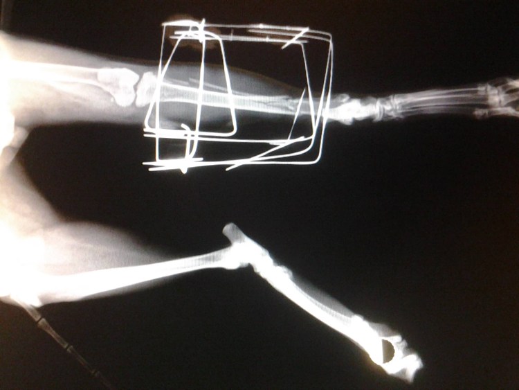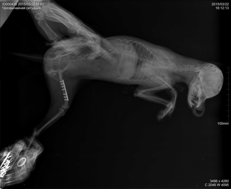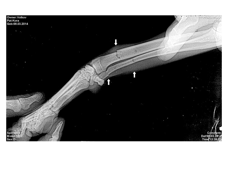 ![Остеосинтез лучевой и локтевой кости у кошки]()