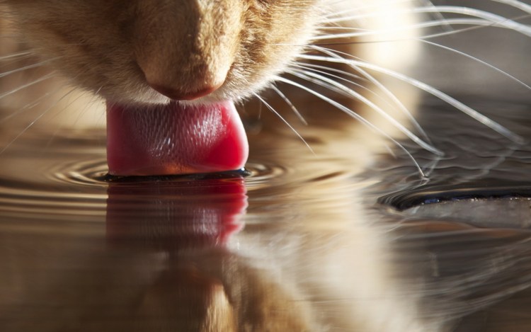 Кот пьет воду
