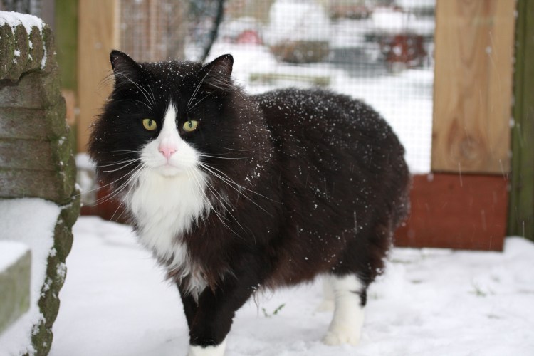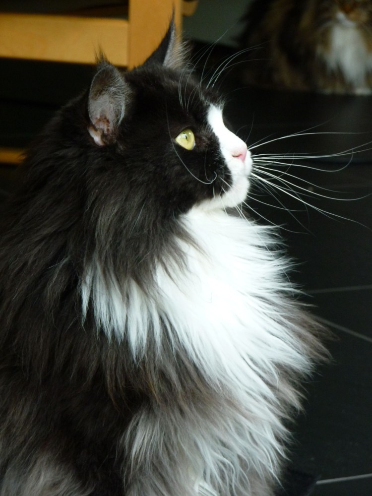 Черно белый пушистый кот