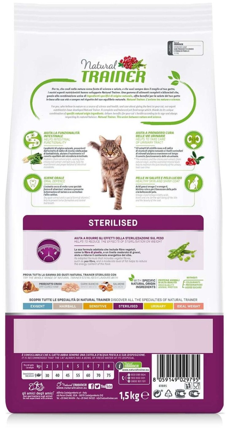 Корм для кошек Trainer natural Adult Cat Sterilised Dry-Cured Ham Dry 1.5 кг