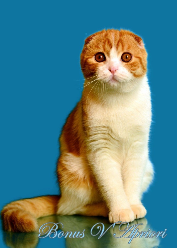 ![Шотландская вислоухая кошка рыжая с белым]()