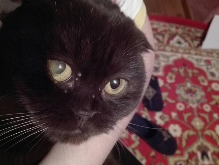 У кота над глазом проплешина